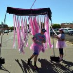 There was another great turnout for the 5th annual run/walk of Beers and Brats for Boobies, to raise funds for the Lamar Area Hospice. There were cool enough temperatures to allow the participants to enjoy their jaunt and just warm enough that the beer or root beer, hot dog or brat at the finish line would be just what they needed once they hit the finish line. Older participants who opted for the beer, had their finish at the expanded beer garden, while younger runners, (under 21) went for a root beer at the finish line set up by the Madonna of the Trails statute. Once the race was over participants had the opportunity to relax and join the crowd in the chamber parking lot. Organizer Megan Grett explained that she decided to continue the work started by her late sister, Jill Tinnes, who passed away from cancer several years ago. All the organizers have formed a strong bond of friendship over the years and each year the run becomes a special event for them. Several hundred participants consisting of cancer survivors or friends and relatives take part, wearing pink tutus if they wish and deciding to walk or run, depending on their abilities.