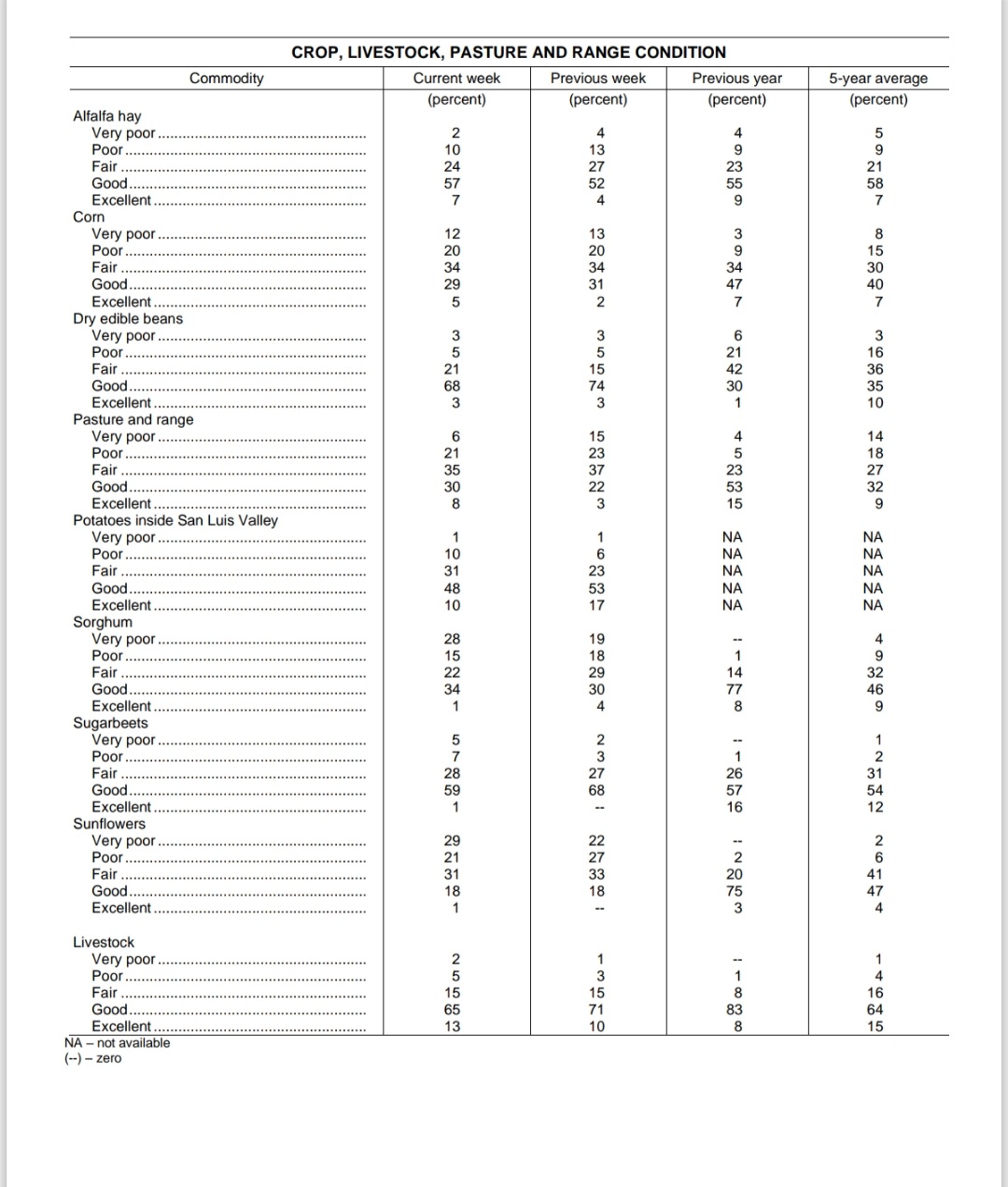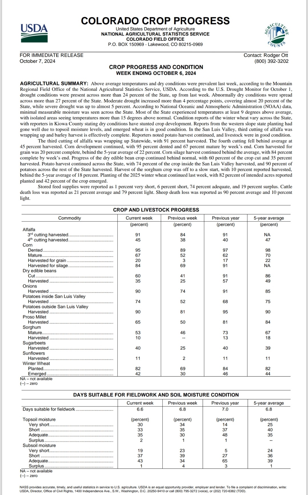 Colorado Crop Progress and Condition – week ending October 6, 2024