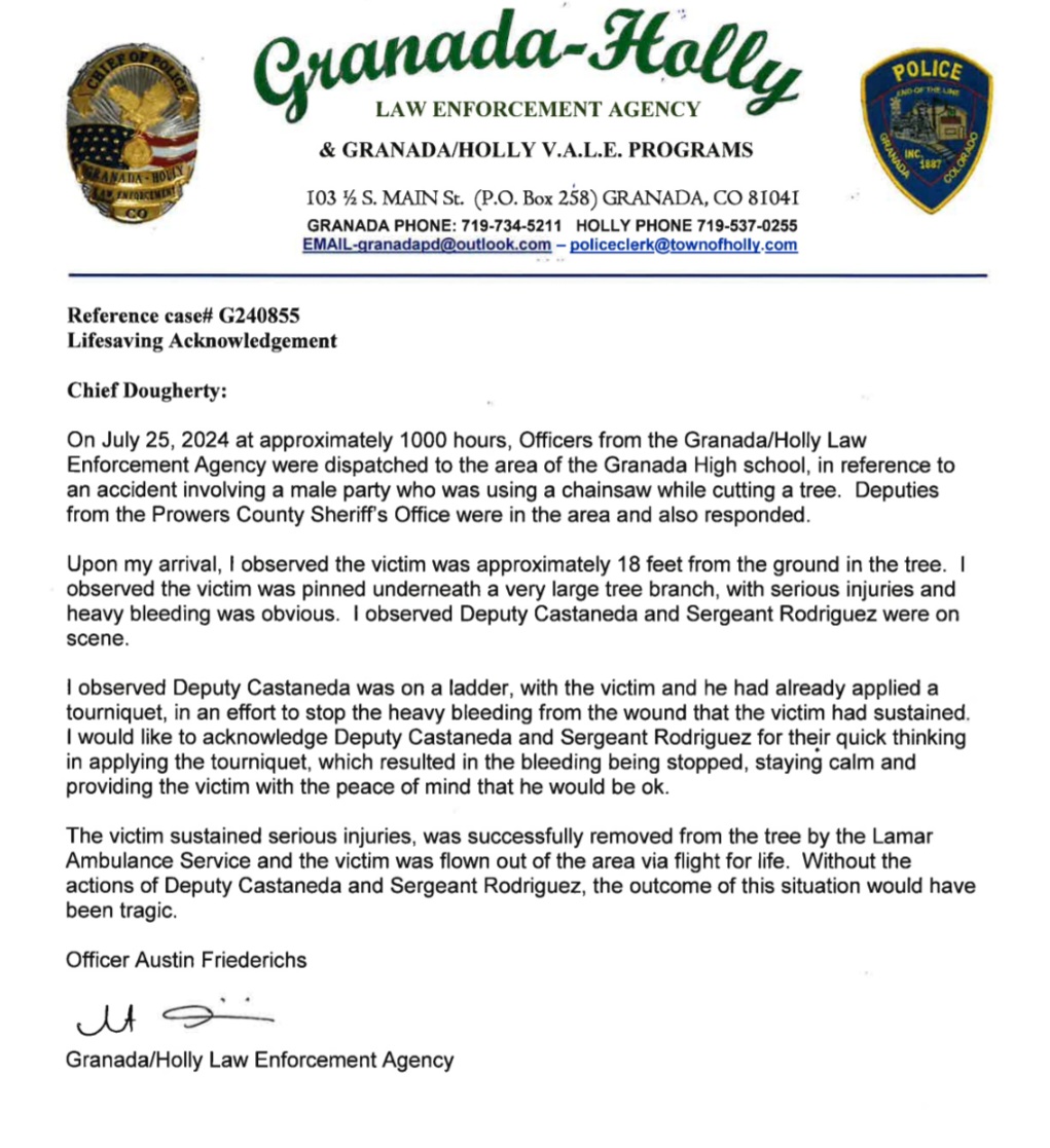 Prowers County Sheriff’s Officers honored with a life-saving award from Granada-Holly Law Enforcement Agency