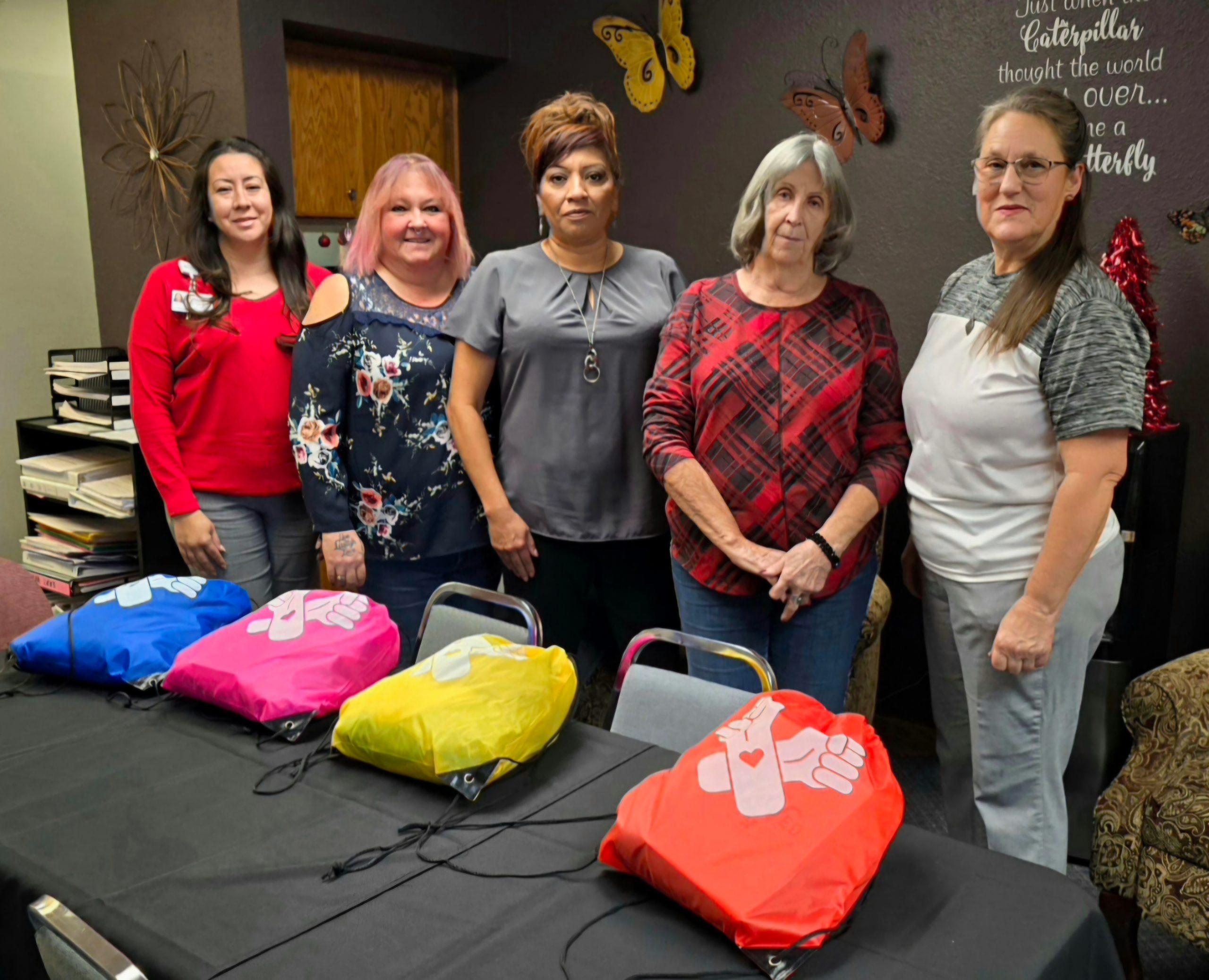 Pictured from left to right:  Amanda Vasquez of Prowers Medical Center; Tammy Delarosa of Domestic Safety Resource Center; Jenny Navarette,  Domestic Safety Resource Center Director; Connie Jacobsen, President of  Zonta Club of Prowers County and Tammy Benabides, Zonta Club of Prowers County Service Chair