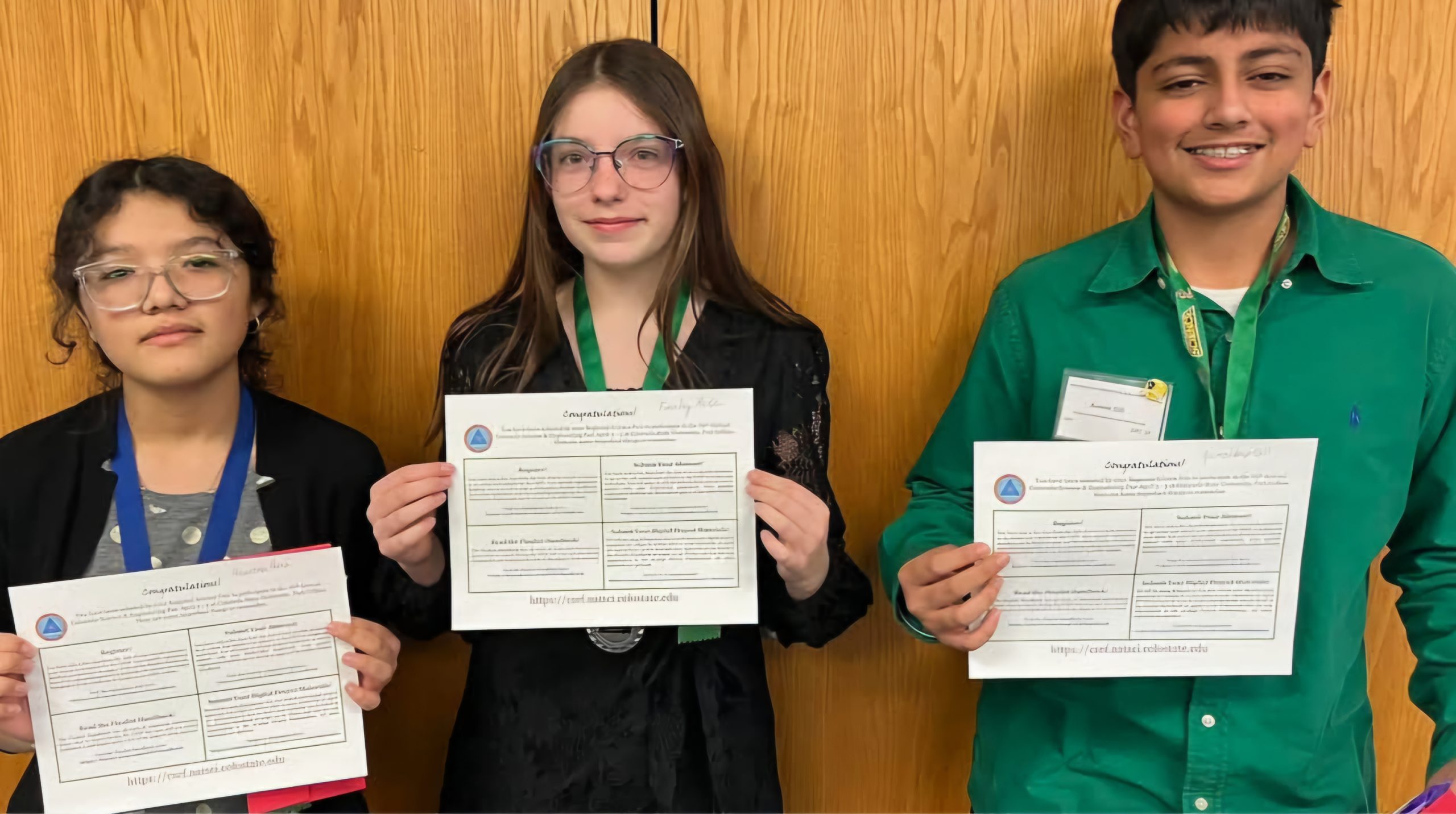 Lamar Middle School winners Azucena Perez, Finnley Reitz, and Anmol Gill