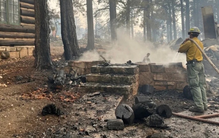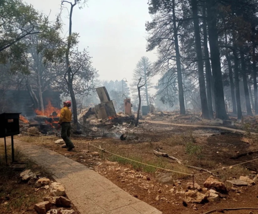 FLAGSTAFF, Ariz. (AP) — A fast-moving wildfire destroyed a historic lodge and dozens of other structures on the Grand Canyon’s North Rim, forcing officials to close access to that area for the season, the park said Sunday.
